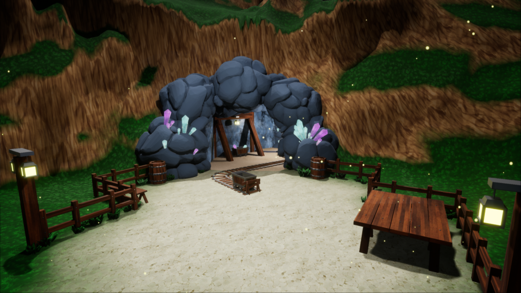 I have been going back and forth between 2 different textures for the cave wall (and I may continue that trend) but for now I am liking my original texture the most. I thought it may have been too much for my level but after tweaking the color to match the rocks, I think it may actually work! I finished the mine cart track that I was working on, only took a few days. I still am working on props, decorations, ceiling pieces and lighting for the cave.